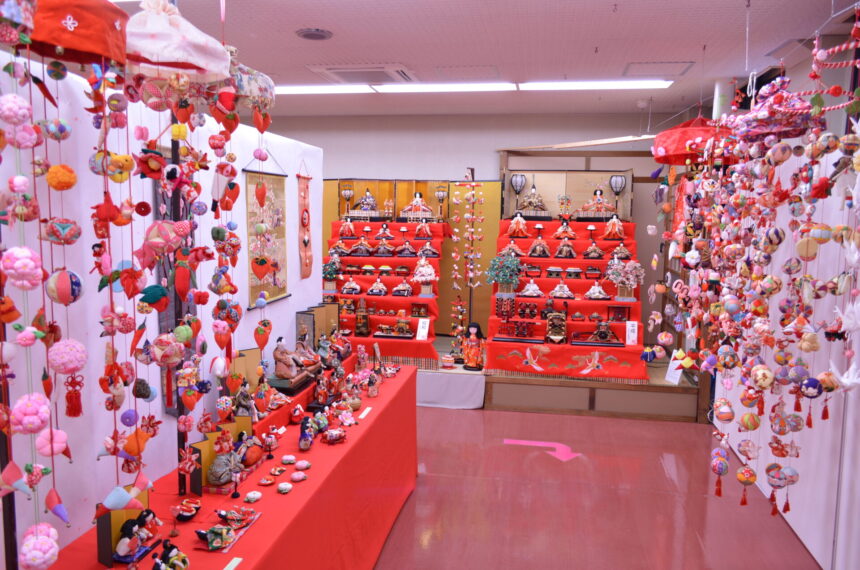 「七段雛飾り」や各種内裏雛、関東圏ではなかなか見かけない「御殿飾り」や市民の方々が製作された大小様々なサイズのつるし飾りが展示されます。